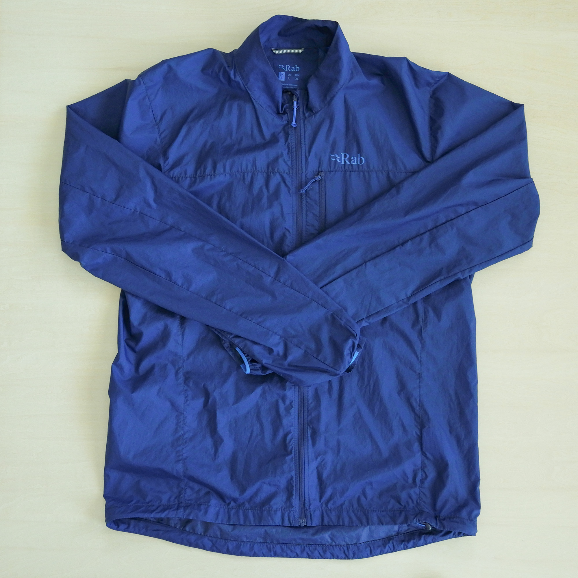イギリスのブランド Rab による超軽量のウィンドシェル(防風ジャケット)。 Lサイズで実測 110g。 軽量ではあるが、裾にドローコードもあり防風性能はしっかりと担保されている。 これだけ...